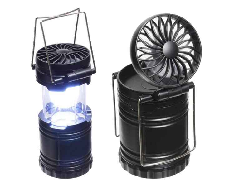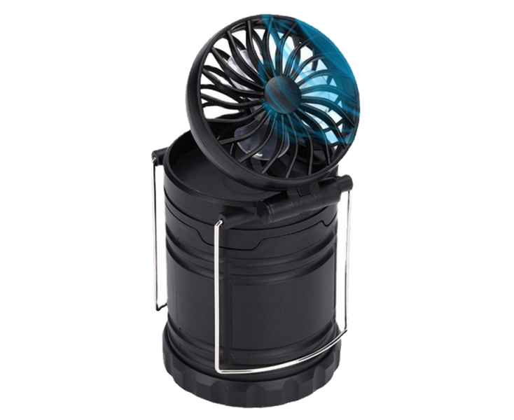 Универсальный кемпинговый фонарь с встроенным вентилятором. Компактный корпус из пластика, удобная ручка для подвешивания и питание от батареек — всё для комфортного отдыха на природе.