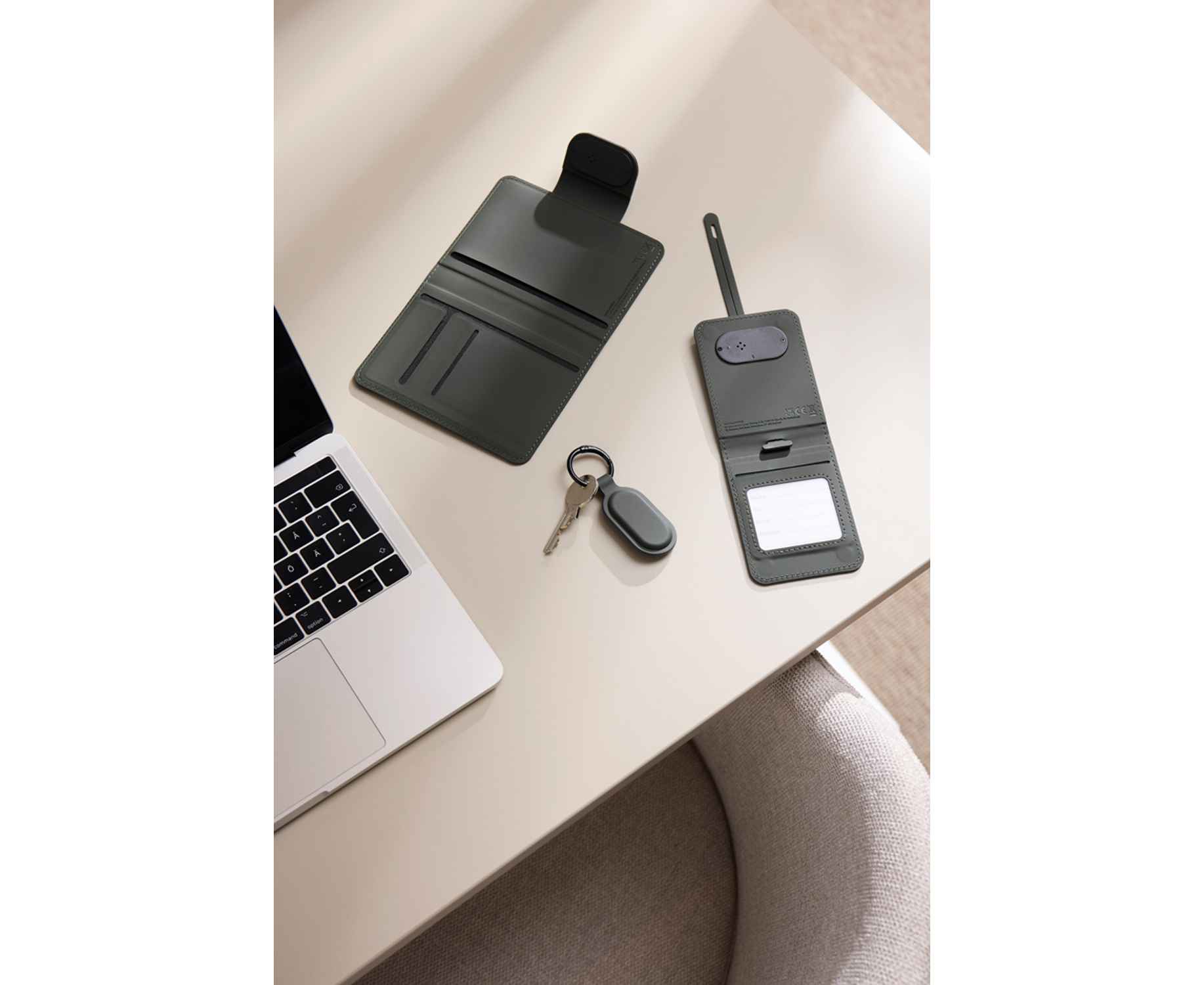 Изготовлена из переработанного ABS-пластика, сертифицированного по стандарту RCS, с матовым PU-покрытием, что делает ее не только функциональной, но и визуально привлекательной. Когда паспорт находится поблизости, встроенный трекер может издавать четкий звуковой сигнал громкостью 75–85 дБ, помогая мгновенно его обнаружить.