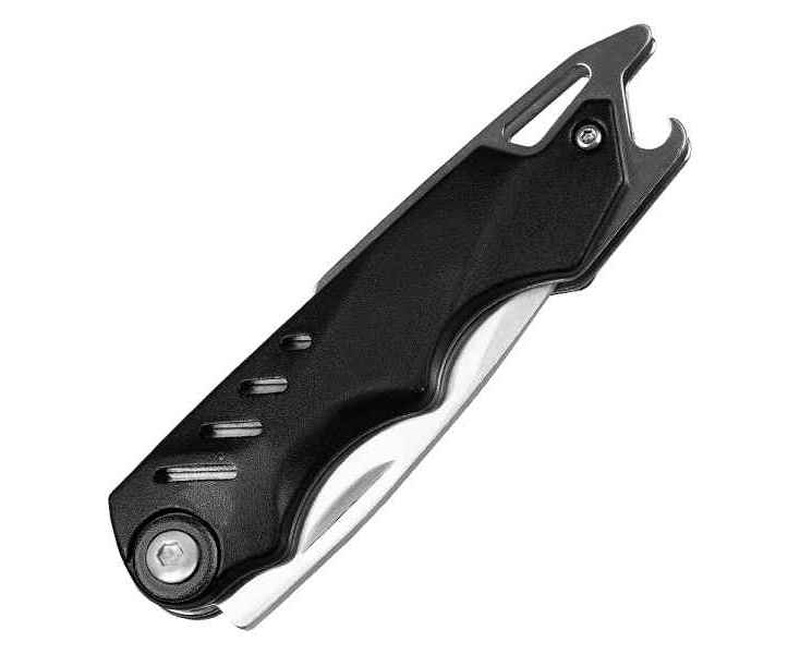 3. Нож складной Tools Impression. Металлический складной нож 2 в 1 с открывалкой, рукоятка выполнена из алюминия, клинок и основание из нержавеющей стали. Этот ручной инструмент отлично подойдет для отдыха на открытом воздухе и походов, а также на рыбалке и в повседневном бытовом использовании. Активно пользуется спросом у рыбаков, туристов и автолюбителей. 10,5x2,5x2,0 см