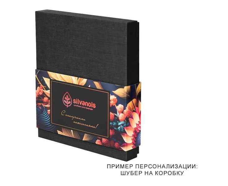 Подарочная коробка изготовлена из переплетного картона, снаружи кашированного дизайнерской бумагой фактурой имитирующей лен. Материал ложемента: EVA, цвет бежевый, покрытие флок цвет бежевый.