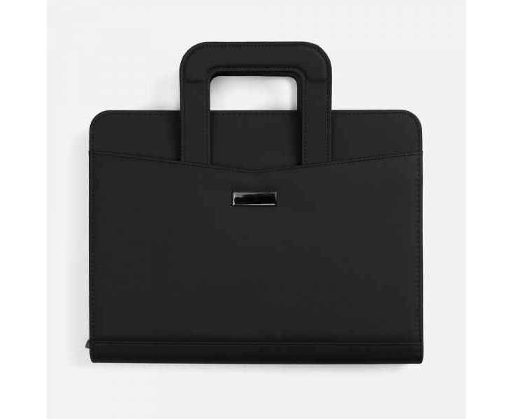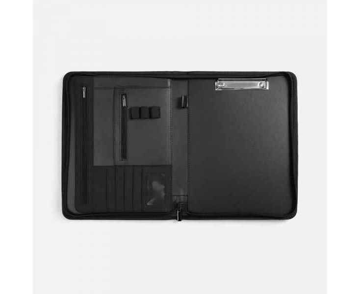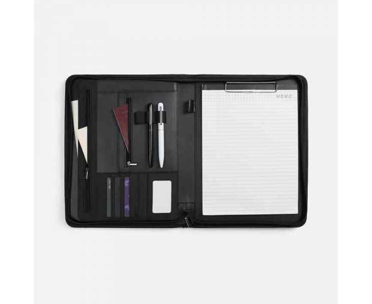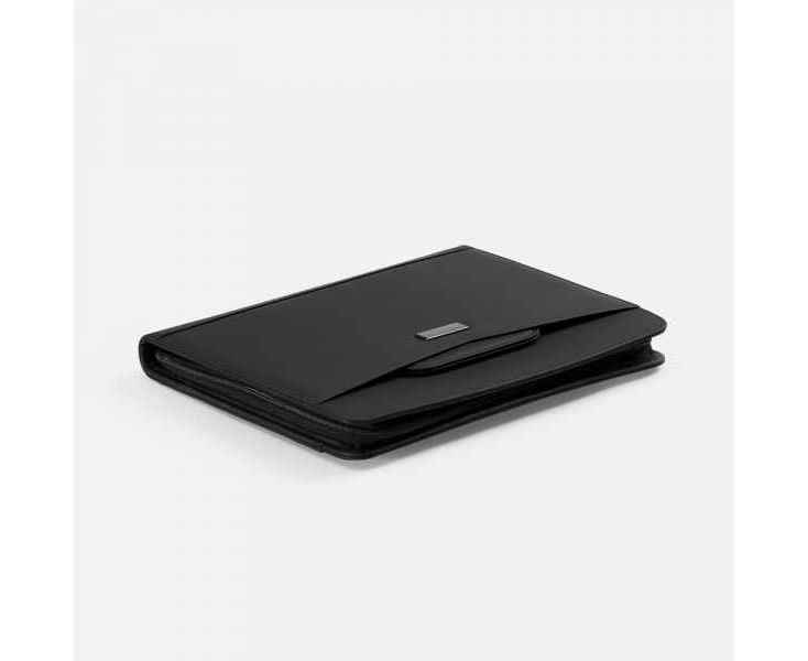 Во вместительной папке предусмотрено множество отделений для визиток, бумаг и письменных принадлежностей — для идеальной организации пространства. Особое преимущество — встроенный блокнот с листами в линейку, который можно легко открепить и положить на его место свои записи, например, для презентаций.