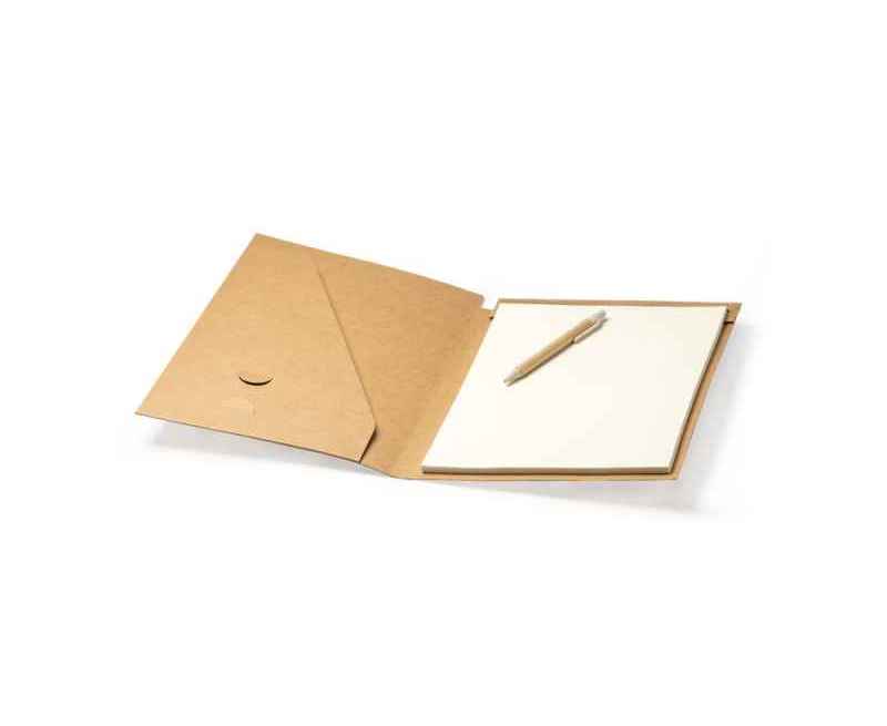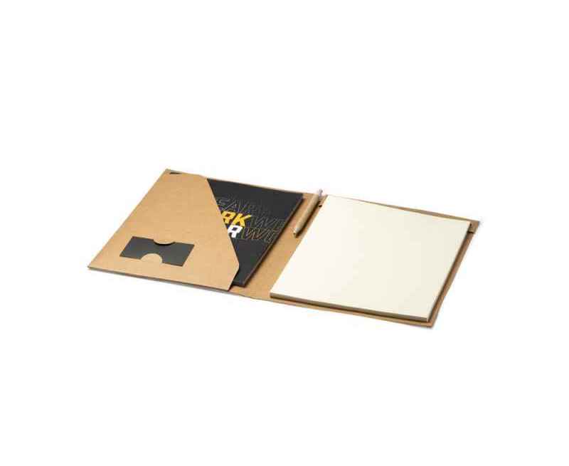 Папка из переработанного картона. Съемный блокнот на 20 листов, ручка в тон из пшеничного волокна, внутренний карман и картхолдер в комплекте.