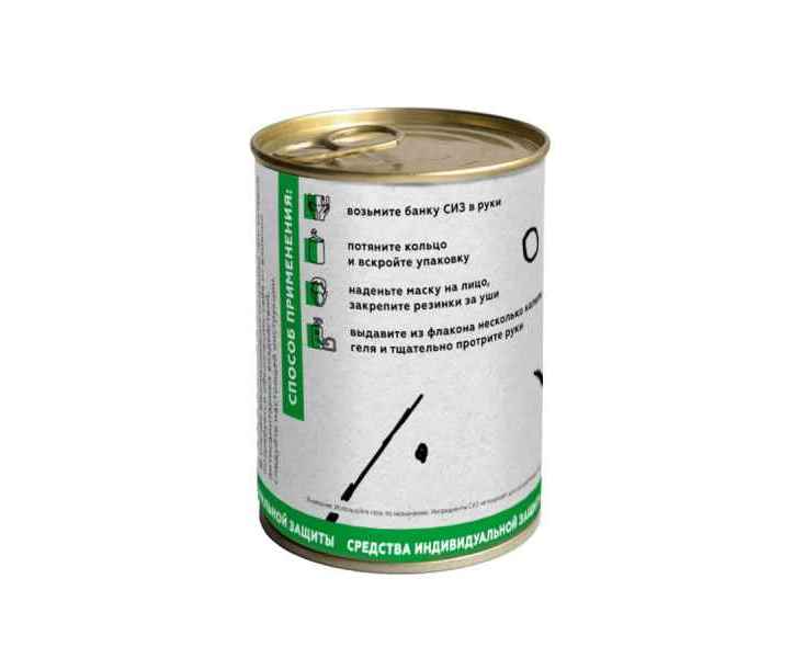 Универсальный комплект защиты на случай угроз здоровью и жизнедеятельности человека. Уникальный продукт! Жестяная запечатанная банка, в которой находятся самые нужные для защиты изделия. Все герметично запечатано и может храниться годами! А значит актуальность подарка будет сохраняться всегда. Набор № 1 состоит из следующих компонетнтов: 1),Защитная х/б маска многоразового пользования. Сшита качественно и добротно из 2 слоев ткани. Имеет самозатягивающиеся резинки для крепления за уши,и шов посередине, который ,повторяет форму лица для более качественной фиксации и защиты. На маску возможно нанесение в 1 цвет. Цвет маски - черный 2) Антисептическая жидкость на основе этанола, массовой долей 75%. Предназначен для уничтожения вирусов и бактерий на поверхности рук и лица, для обеззараживания телефона и других предметов обихода. Упаковка – пластиковый пузырек емкостью 50 мл с крышкой.,Нанесение на флакон -,цветная наклейка. Стандарный готовый набор поставляется со склада в запечатанном виде, без нанесения на компонентах и без этикетки. Для готовых комплектов, поставляемых со склада,можно заказать полиграфическую этикетку для банки, нанесение на ингредиентах в этом случае невозможно. Для заказа комплектов с нанесением на ингредиенты (маска, флакон с антисептической жидкостью) просьба обращаться к мнеджерам продаж. В этом случаае компоненты набора предварительно,персонализируются, после чего происходит закатка банки и оклейка этикеткой.