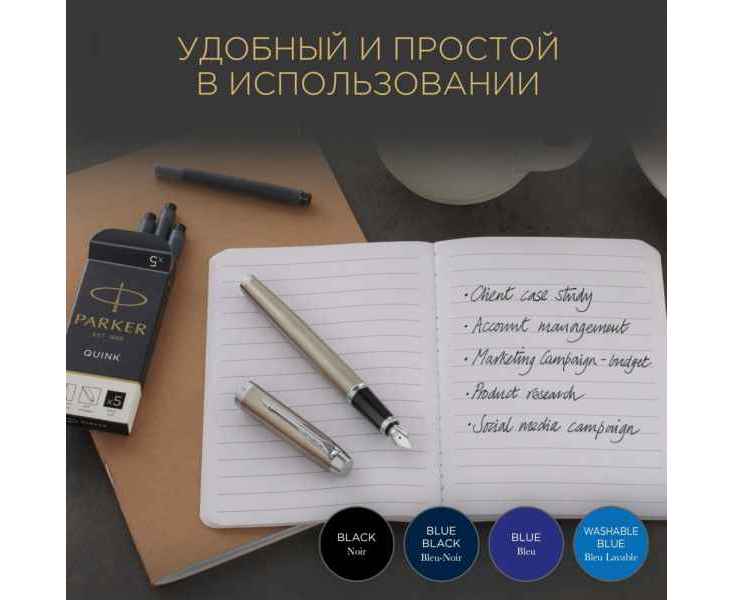 Подробнее о Parker Картридж с смываемыми чернилами для перьевой ручки Parker Quink, Washable Blue, упаковка из 5 шт.