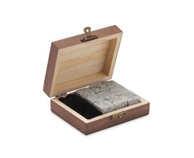 Многоразовый набор кубиков для охлаждения в коробке из сосны. Включает 9 кубиков в бархатном мешочке.