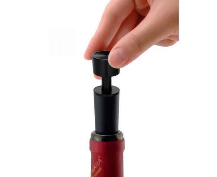 Вакуумная пробка Plug хорошо входит горлышко и надежно фиксируется, предотвращая тем самым попадание кислорода внутрь бутылки. Это исключает выливание вина, даже если перевернуть бутылку.