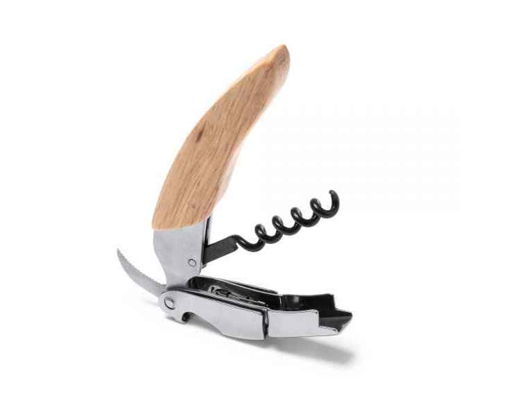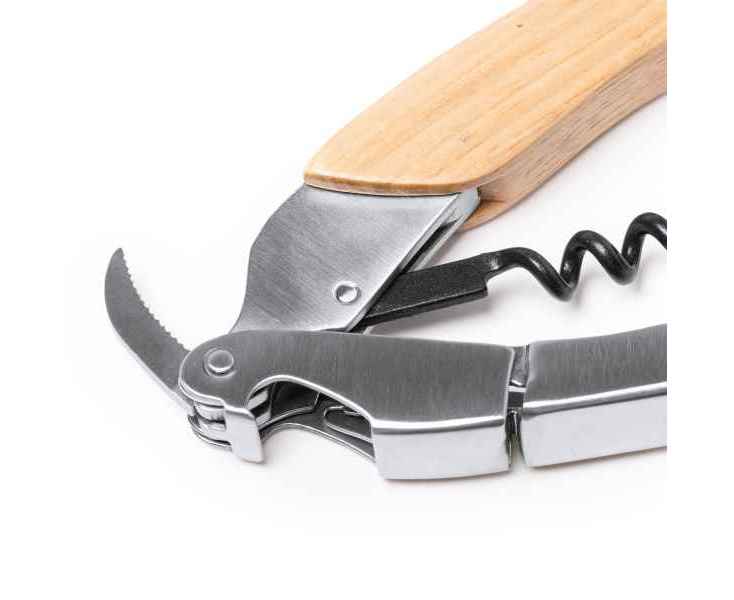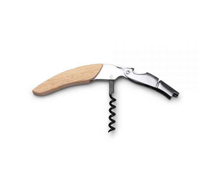 Классический штопор из нержавеющей стали с деревянной ручкой.