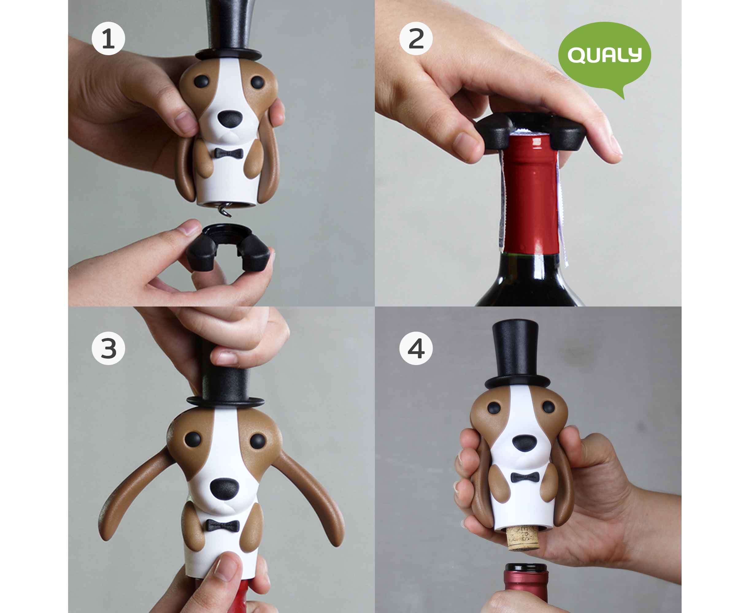 Штопор Wine Hound – это оригинальный презент для любителей хорошего вина. Удобная конструкция позволяет без труда изъять пробку из бутылки, превратив этот, как правило, сложный процесс в увлекательное развлечение. Ушки милого щенка используются в качестве рукояток, которые после вкручивания резьбы внутрь пробки необходимо плавно опустить вниз. Готово – наслаждайтесь ароматным вином в обществе родных и близких. Материал: ABS-пластик Размер штопора и резака для фольги : 63 x 69,6 x 145,5 мм.