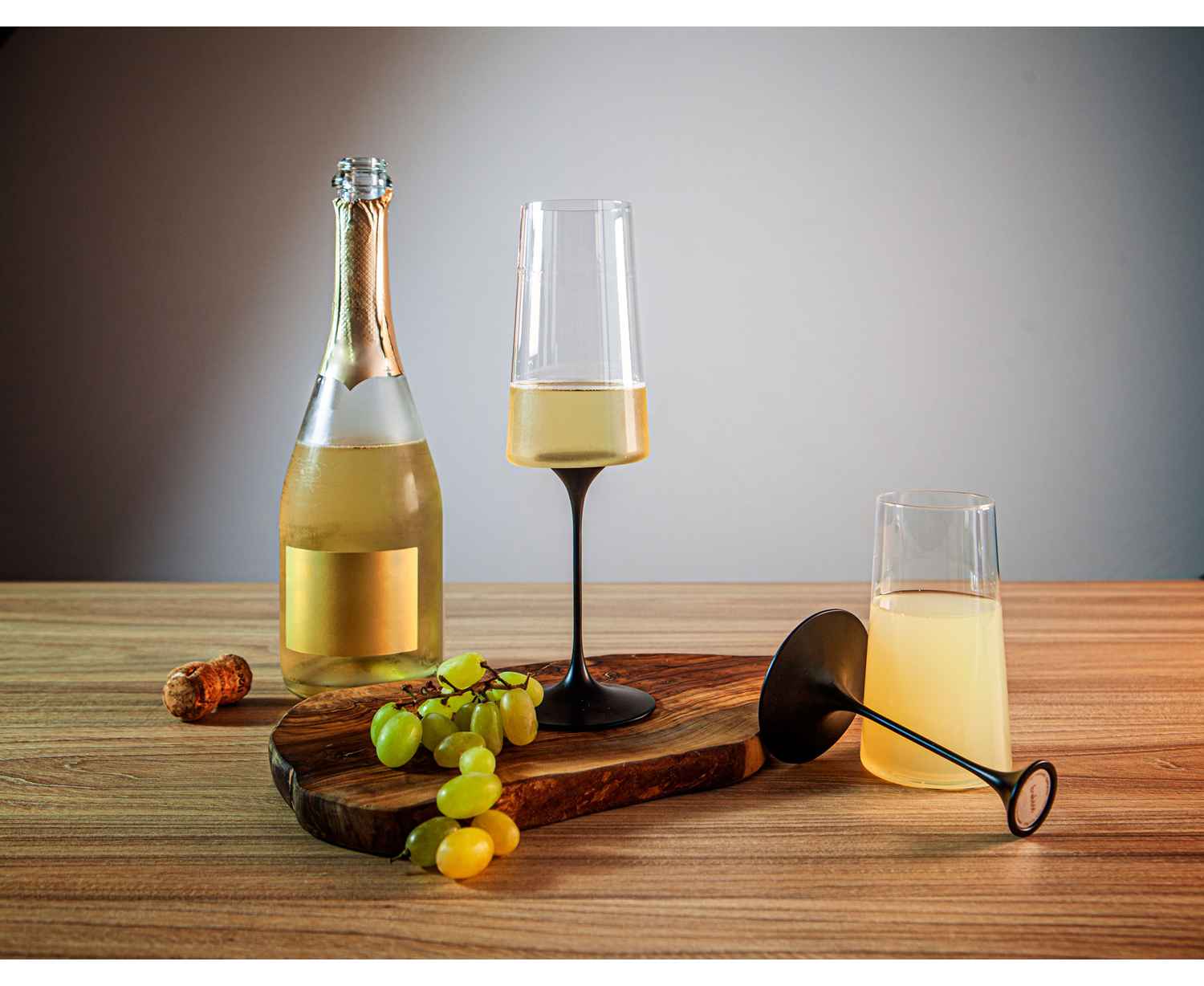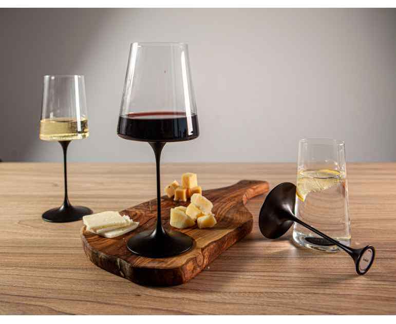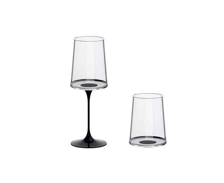 Используйте его как самостоятельный стакан для воды или моментально превращайте в элегантный бокал для белого вина, соединив с изящной алюминиевой ножкой черного цвета. Ваш стиль теперь может меняться так же легко, как и настроение.