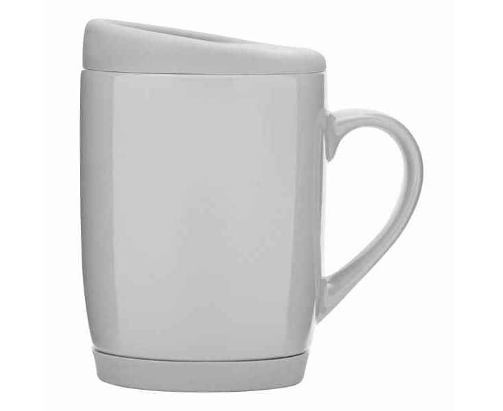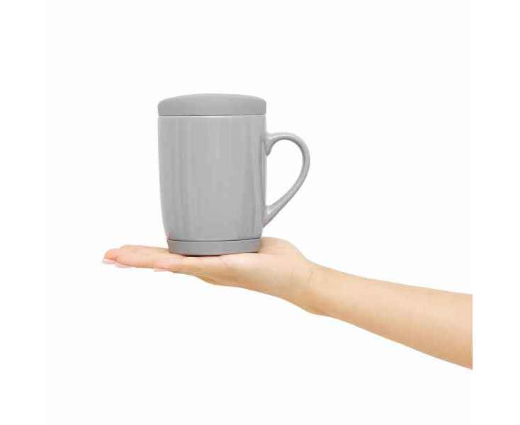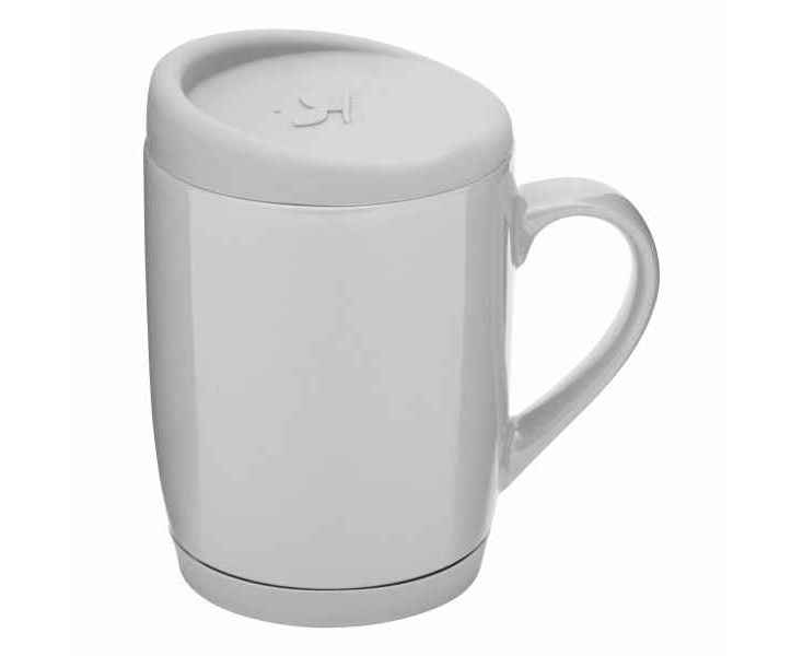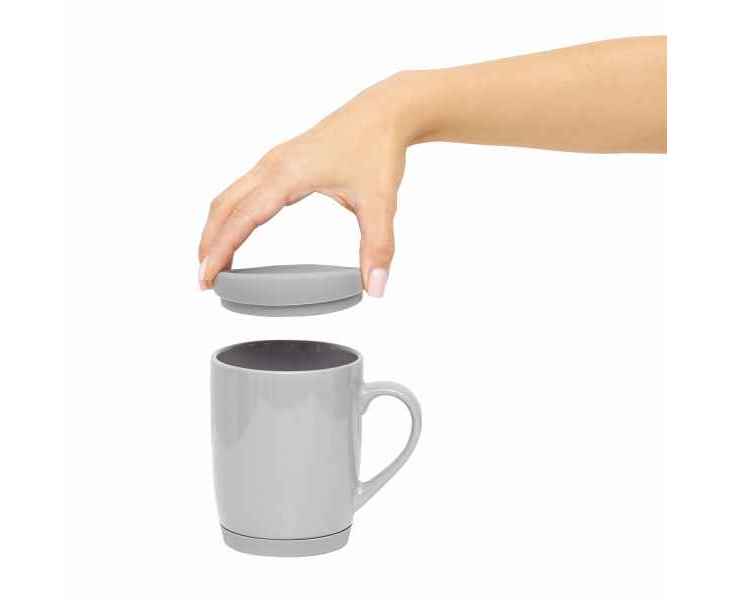 Керамическая кружка EASY DAY со съемной силиконовой подставкой и силиконовой крышкой, предохраняющей от проливания, вместимость ок. 350 мл, в белой коробке