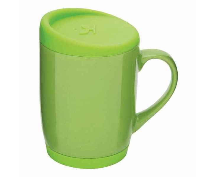 Керамическая кружка EASY DAY со съемной силиконовой подставкой и силиконовой крышкой, предохраняющей от проливания, вместимость ок. 350 мл, в белой коробке