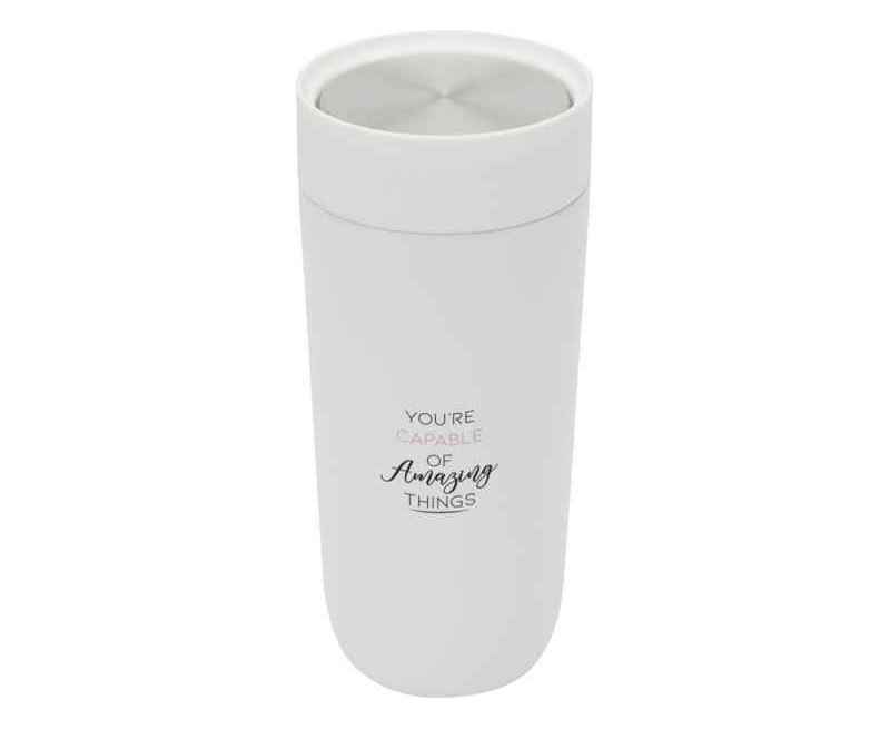 Премиальная кружка для питья находу с удобным механизмом открывания из нержавеющей стали, позволяющим открывать его одной рукой. Корпус из нержавеющей стали, сертифицированной согласно RCS, с прочным порошковым покрытием. Крышка изготовлена из сертифицированной согласно RCS нержавеющей стали и пластика РР. Медное покрытие и керамическое внутреннее покрытие. Подходит для большинства стандартных автомобильных подстаканников. Сохраняет напитки горячими в течение 12 часов или холодными в течение 24 часов. Поставляется в подарочной коробке из переработанного картона. Объем: 350 мл. RCS certified recycled stainless steel. упаковка FSC Mix Credit P5.1 CU-COC-877277.