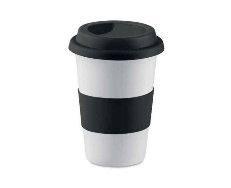Одностенчатая керамическая кружка с силиконовой крышкой и ободком. Емкость 400мл . Не использовать в микроволновке. Керамотрансфер подойдет для мытья в посудомоечной машине. Поскольку это одностенчатая кружка , осторожно - может нагреваться!