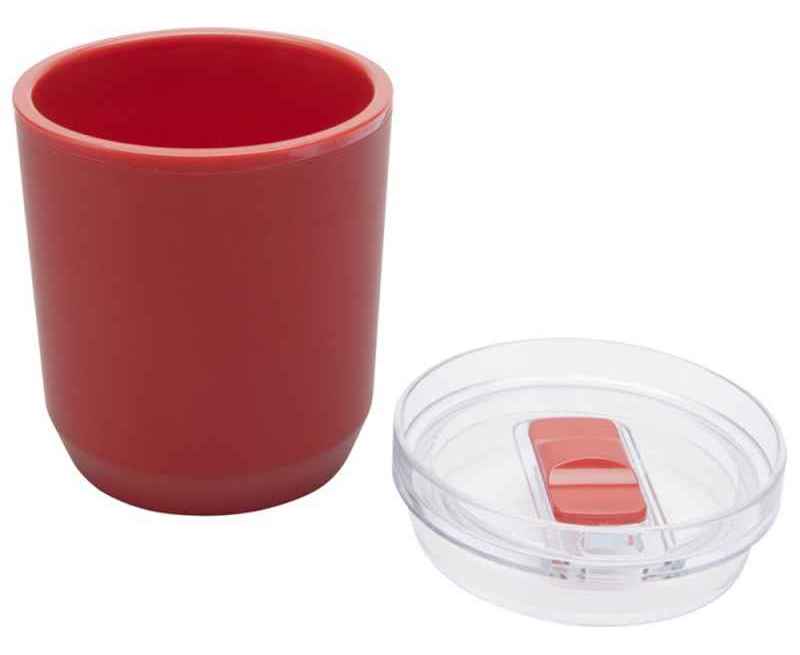 Кружка с простым дизайном, подходящая для большинства кофемашин и автомобильных подстаканников. Имеет двойную конструкцию из переработанного пластика PP снаружи и пластика PP внутри. Раздвижная крышка изготовлена из пластика AS и PP. Объем: 180 мл. Recycled Plastic.