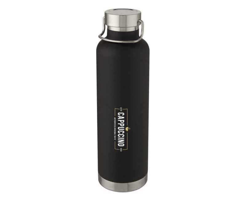 Большая спортивная бутылка с двойной стенкой и вакуумной конструкцией из нержавеющей стали 18/8 и медной изоляцией, которая сохраняет напитки горячими или холодными в течение нескольких часов. Конструкция также предотвращает образование конденсата на внешней стороне бутылки, а модное порошковое покрытие делает ее чрезвычайно прочной. Навинчивающаяся герметичная крышка из нержавеющей стали с прочной, выполненной из нержавеющей стали, петлей для руки. Широкое отверстие для легкого заполнения, разливания и очистки. Не содержит БФА, испытана и одобрена в соответствии с немецким законодательством о безопасности пищевых продуктов (LFGB). Проверена на содержание фталатов и одобрена для использования в соответствии с правилами REACH. Идеально подходит для кубиков льда. Объем 1 л. Рекомендуется мыть вручную. В подарочной коробке из переработанного картона.