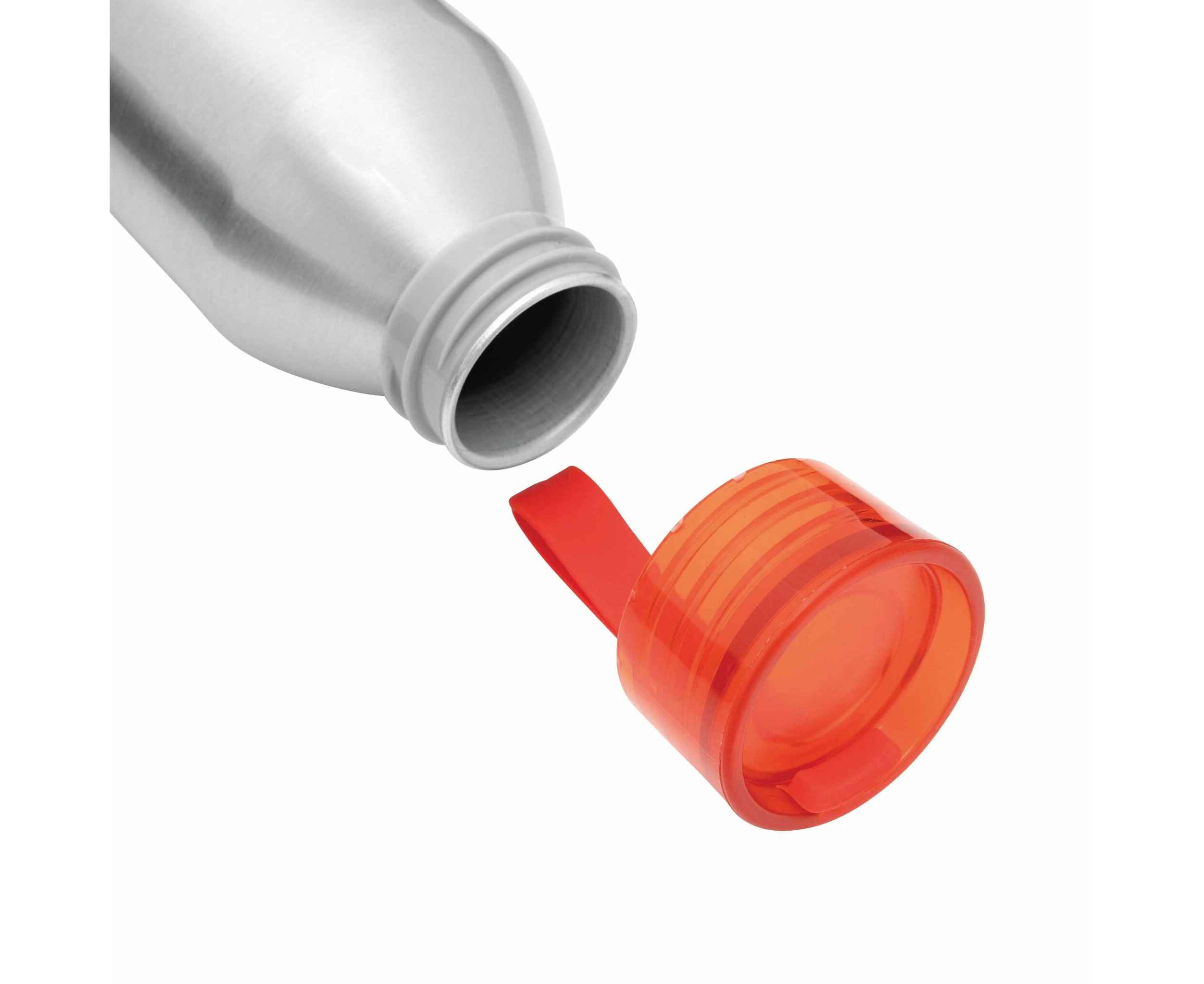Алюминиевая бутылка COLOURED: цветная закручивающаяся пластиковая крышка, силиконовая петля на руку, объем: около 650 мл.