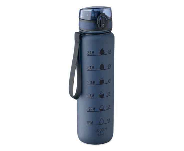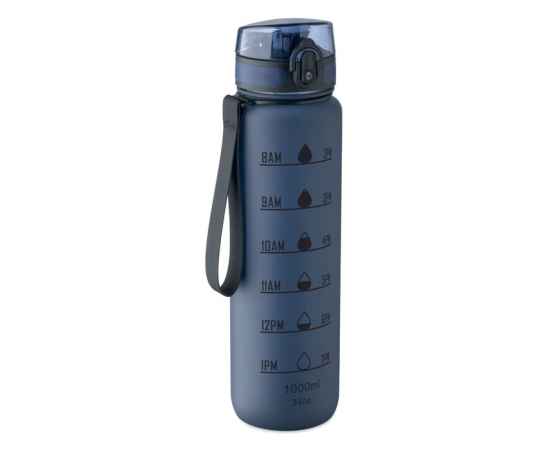 Спортивная бутылка из RPET с указанием графика потребления воды, откидной крышкой с предохранительным замком от открывания и ремешком для переноски. Герметичная. Емкость: 1 л.
