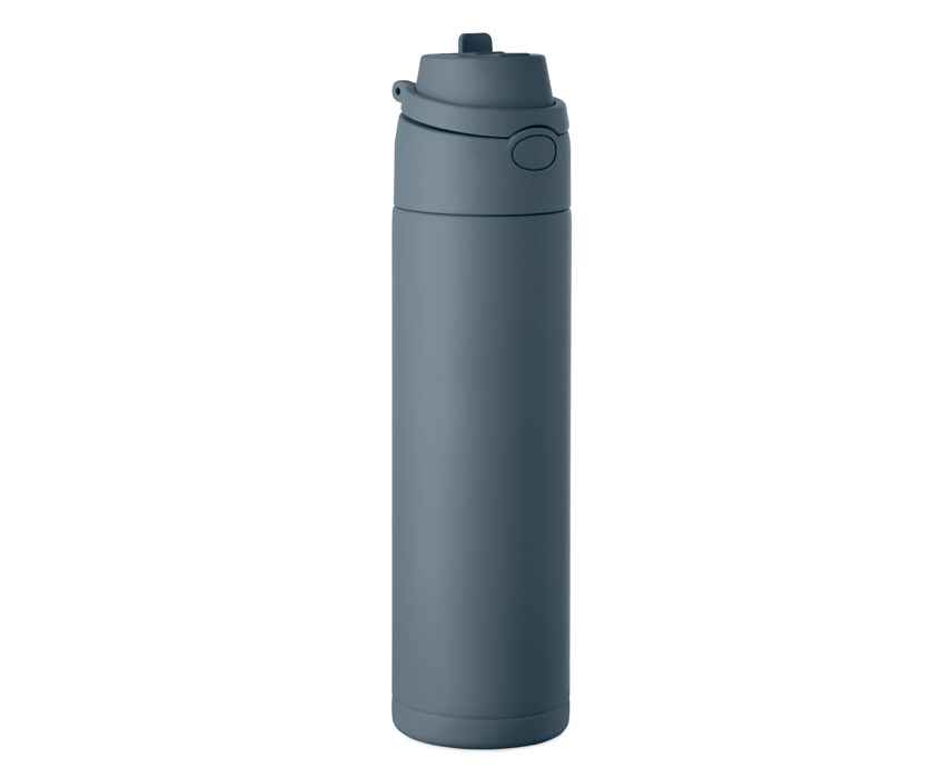 Одностенная бутылка из переработанной нержавеющей стали 90% и 10% нержавеющей стали с трубочкой 2 в 1, крышкой из полипропилена и ручкой. Герметичная. Объём: 650 мл.