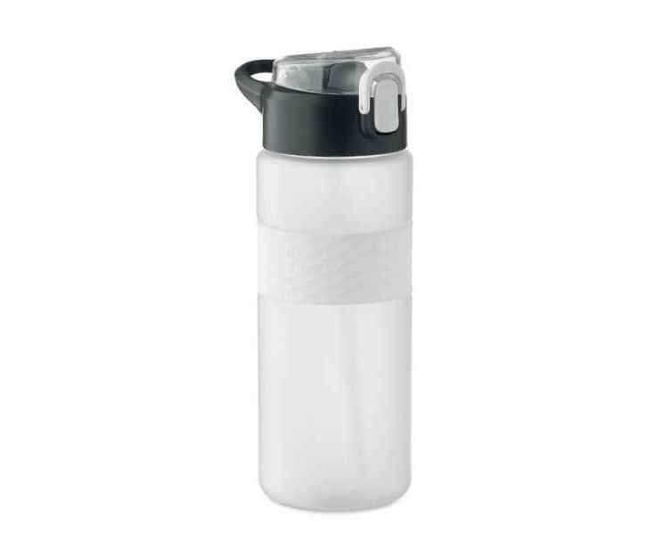 Бутылка для питья из RPET с силиконовой ручкой, встроенной трубочкой, откидной крышкой из PP и замком от проливания. Герметичная. Объём: 700 мл.