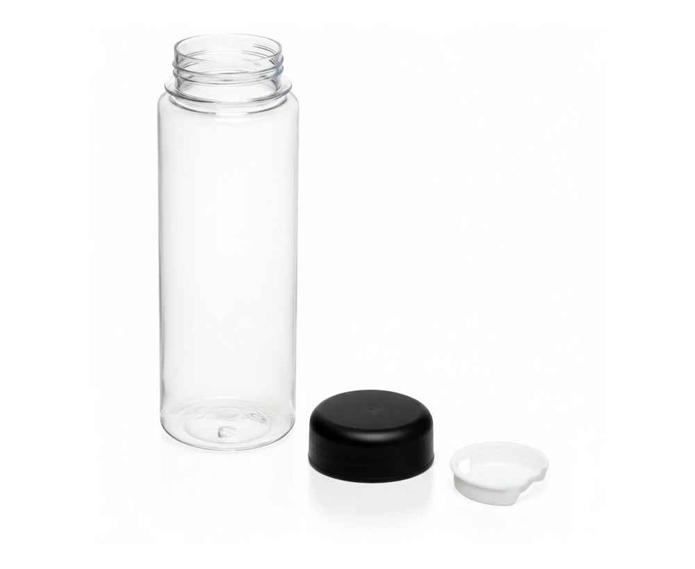 Лаконичный внешний вид позволяет нанести на аксессуар логотип компании. Прозрачный корпус дает возможность контролировать количество содержимого. Благодаря съемному фильтру в воду можно добавлять лимон, мяту и фрукты. Силиконовое кольцо предотвращает протекание, а крышка надежно закрывает бутылку.