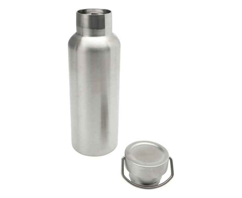 Прочная бутылка для воды из нержавеющей стали с двойными стенками, вакуумной изоляцией, сертифицированная RCS, с завинчивающейся крышкой из нержавеющей стали и прочной ручкой-петлей из нержавеющей стали. Объем: 500 мл. Герметичность. Уложена в подарочную коробку. RCS certified recycled stainless steel.