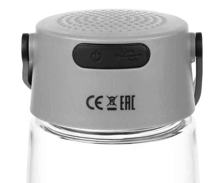 Бутылка для воды емкостью 700 мл Torsta Light имеет дополнительные функции беспроводной колонки (питание от встроенного аккумулятора) и кемпингового светильника (при доукомплектации тремя элементами ААА, арт. 5198).
