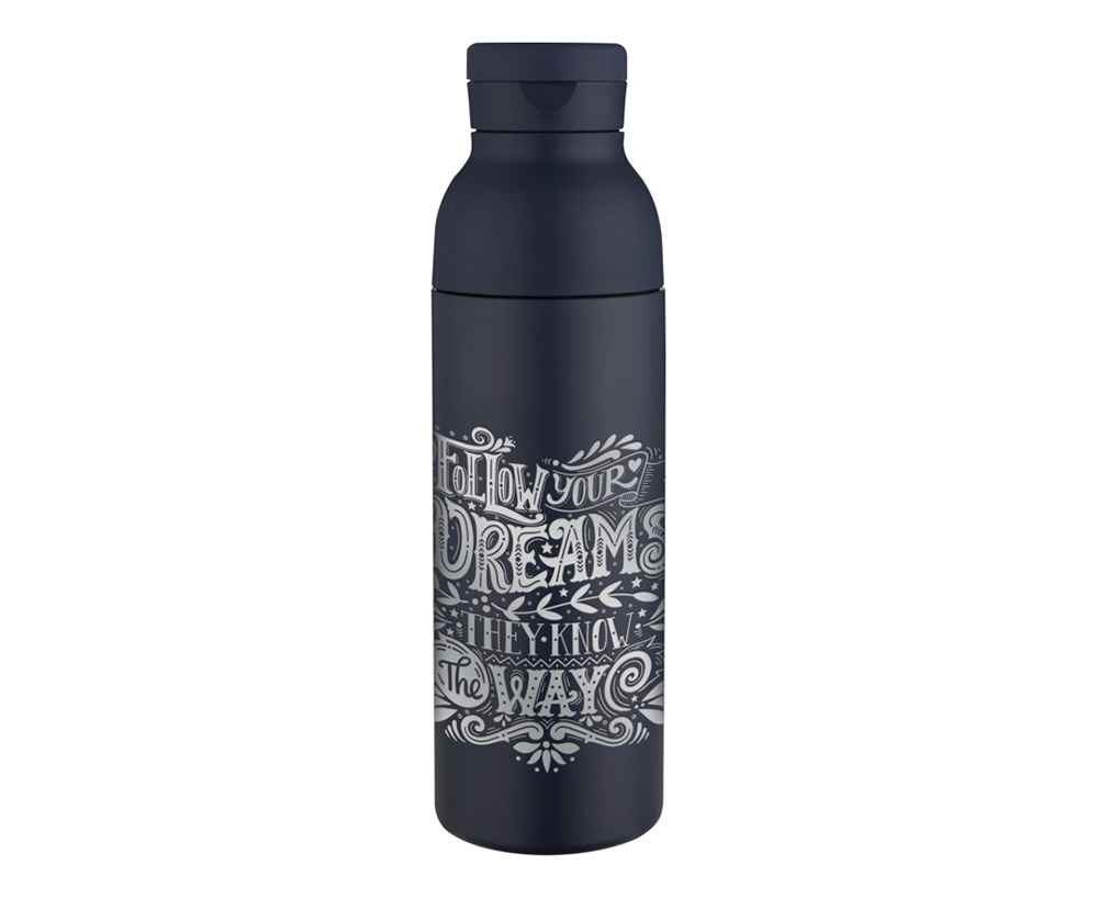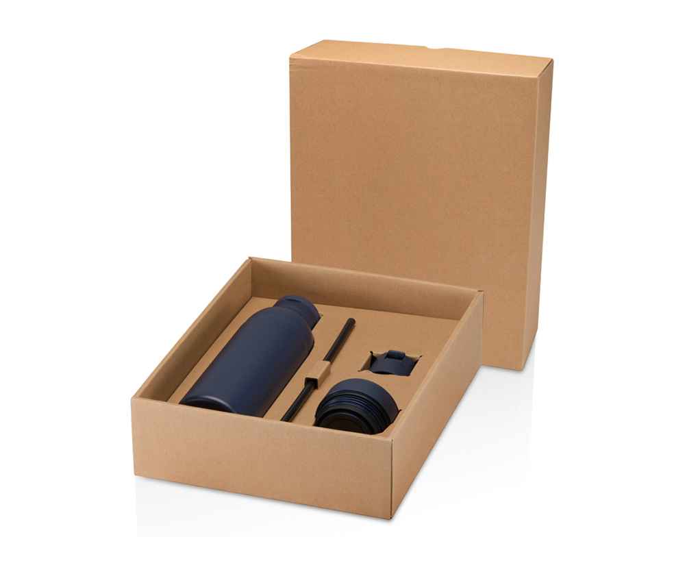В этот подарочный набор входит бутылка объемом 650 мл с двойными стенками и вакуумной изоляцией, изготовленная из сертифицированной согласно RCS нержавеющей стали с медным покрытием для лучшего поддержания температуры.