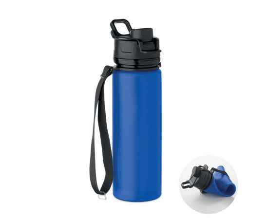 Складная силиконовая спортивная бутылка с крышкой из полипропилена (PP), ручкой, полиэстеровым ремешком и прозрачной застежкой для фиксации в сложенном виде. Герметичная. Объём: 500 мл.