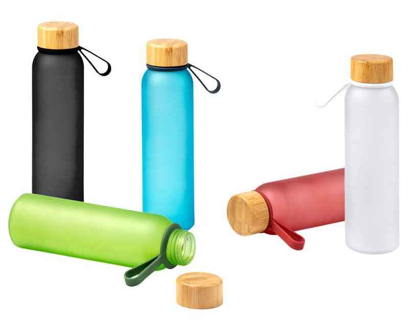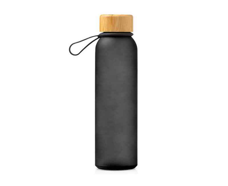 Полупрозрачная бутылка из переработанного стекла. Бамбуковая крышка с держателем. Объём: 500 мл. Поставляется в индивидуальной коробке.