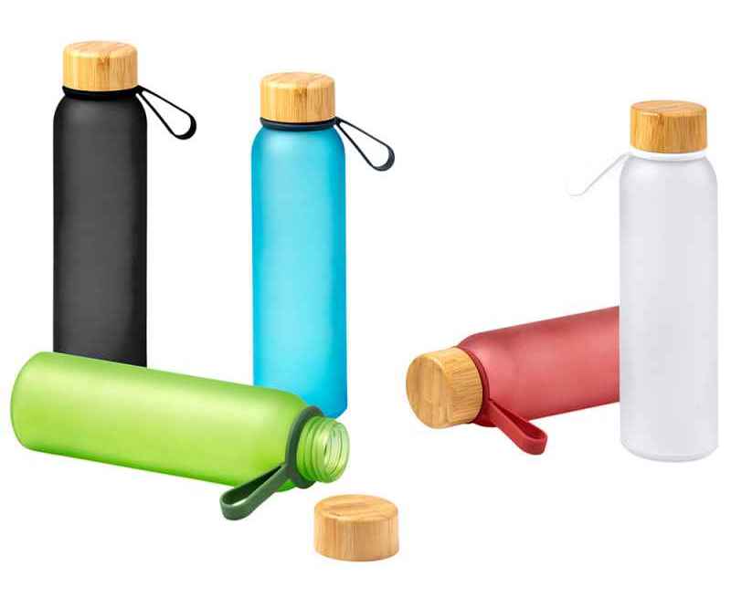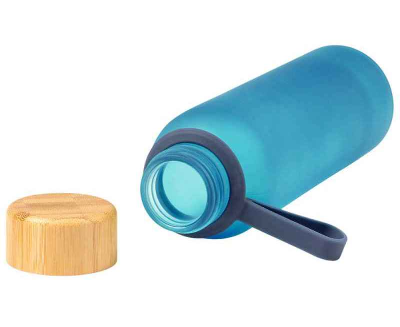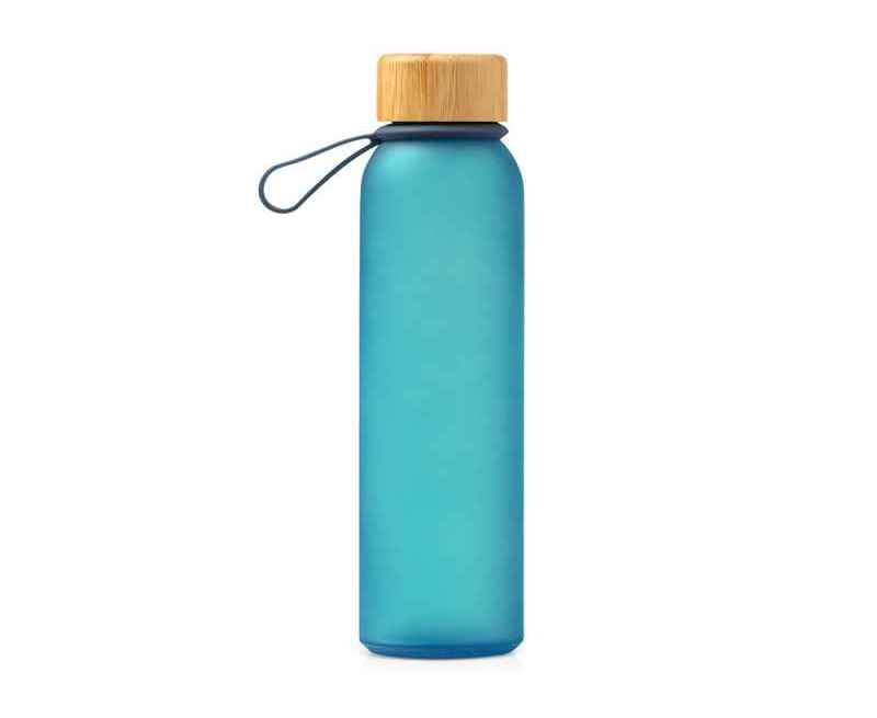 Полупрозрачная бутылка из переработанного стекла. Бамбуковая крышка с держателем. Объём: 500 мл. Поставляется в индивидуальной коробке.