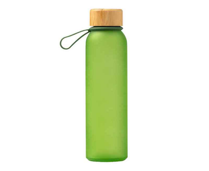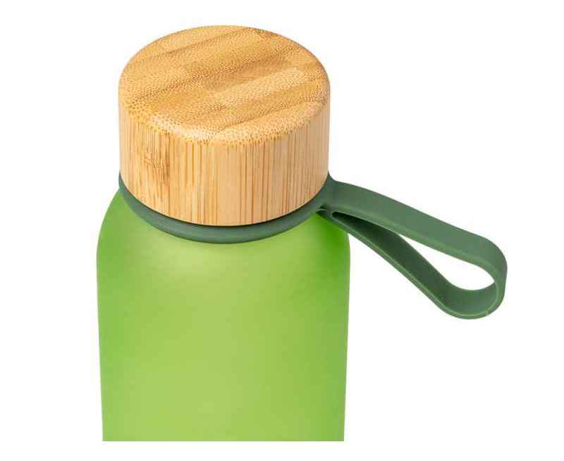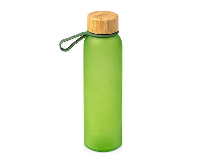 Полупрозрачная бутылка из переработанного стекла. Бамбуковая крышка с держателем. Объём: 500 мл. Поставляется в индивидуальной коробке.