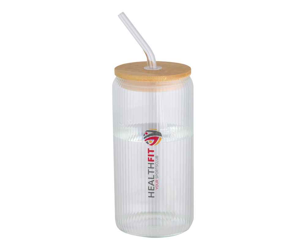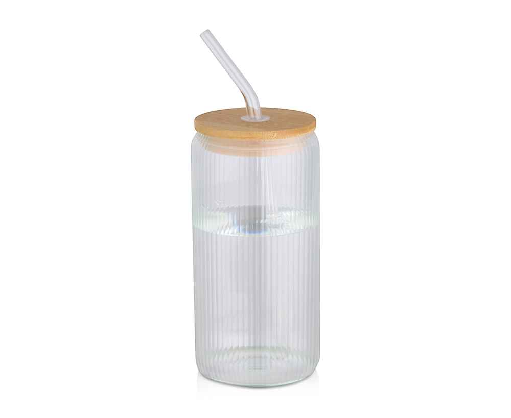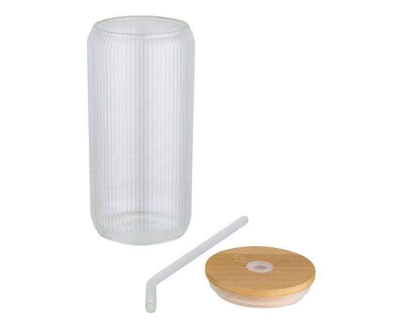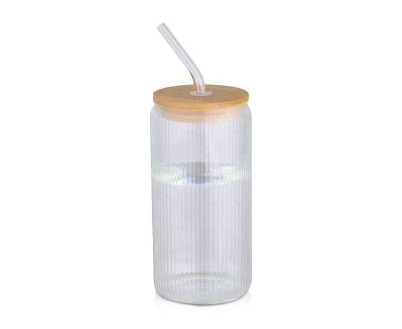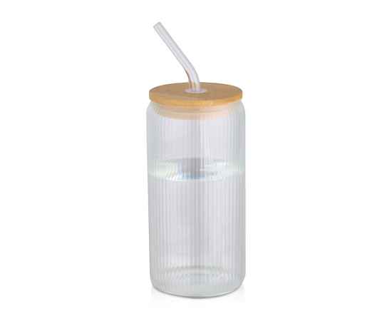 Банка из боросиликатного стекла со стеклянной трубочкой и бамбуковой крышкой. Банка имеет уникальный ребристый дизайн внутри и гладкую внешнюю поверхность, идеально подходящую для печати логотипа. Используемый бамбук выращивается в экологически чистых условиях с соблюдением принципов экологической и социальной ответственности. Поставляется в подарочной коробке из переработанного картона. Объем: 650 мл. 90% Боросиликатное стекло, 10% Бамбук с сертификатом FSC. упаковка FSC Mix 100% P5 CU-COC-877277. FSC Mix Credit N5 CU-COC-877277.