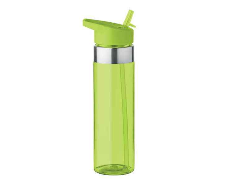 Фляга для питья из пластика (Tritan) с металлическим кольцом. Внутри трубочка встроенная в откидной механизм крышки. Объем 650 мл. Материал - Тритан (Tritan) Посуда из Тритана (Tritan) аналогична стеклянной — прочная, блестящая и абсолютно безвредна для здоровья. Она не впитывает запахи и цвета и никак не влияет на вкус налитого напитка. Тритан ударопрочен, устойчив к мойке в посудомоечной машине. Даже после двух тысяч моечных циклов посуда сохраняет свой первозданный блеск и прозрачность. Уровень безопасности - BPA/BPS free.