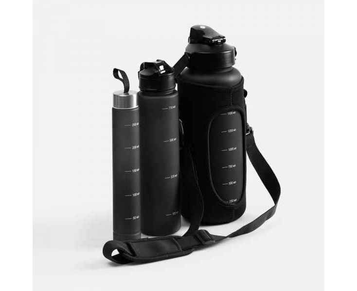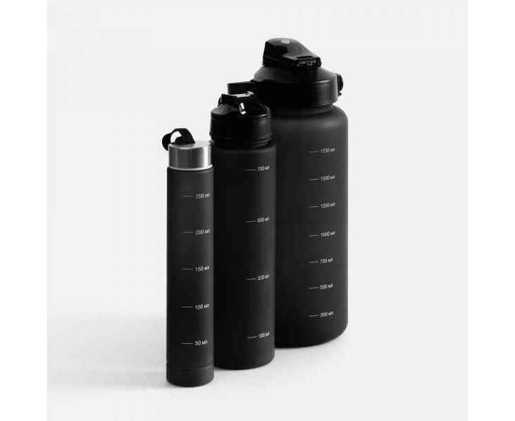 «Папа, мама, я — спортивная семья!». Набор спортивных бутылок Aquapack — настоящая находка: это три емкости разного объема, вложенные одна в другую по принципу матрешки. Прочные и эстетичные бутылки с черным матовым покрытием подойдут для тренировок, спортивных мероприятий, туристических походов и семейных пикников на природе.