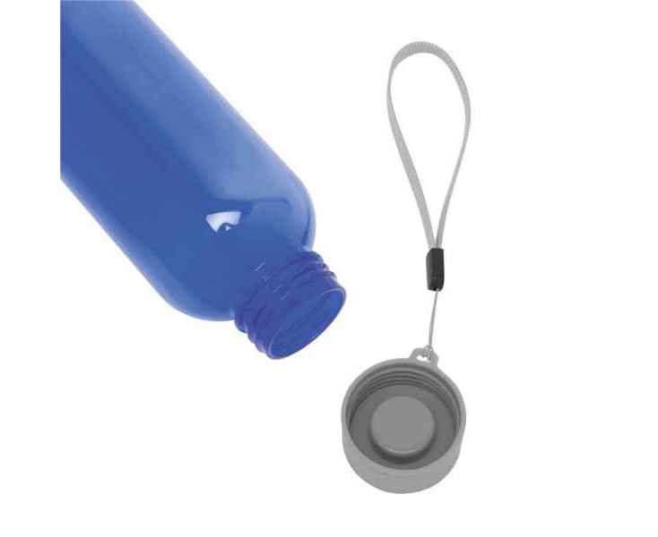 Пластиковая бутылка SIMPLE ECO: изготовлена из переработанного ПЭТ, нержавеющая стальная крышка с винтовой пробкой и ручным ремешком, объем 500 мл. ø60 x 205 мм