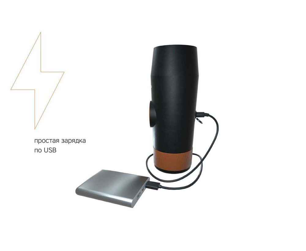 Barista – это компактная кофемашина, она с лёгкостью помещается в сумку, работает без розетки от встроенного аккумулятора. Все что вам потребуется для приготовления ароматного и свежего эспрессо – это кипяток и кофе (молотый или в капсулах).С помощью этой кофемашины вы сможете приготовить кофе в любом месте – дома, на работе, в походе или на прогулке. Для приготовления кофе вам не потребуется искать кружку, емкость для свежеприготовленного кофе находится прямо под крышкой кофемашины. Термокольцо на крышке позволит удобно и безопасно наслаждаться свежим напитком. Портативная кофемашина создает давление до 15 бар для приготовления настоящего эспрессо. Одного запуска хватает на 2 чашки эспрессо по 30 мл, минимальное количество воды для запуска 50 мл. Для приготовления горячего напитка необходим кипяток 85°С – вы можете использовать кипяченую воду из термоса или чайника. Рекомендуется мыть под обычной теплой водой без добавления моющих средств.