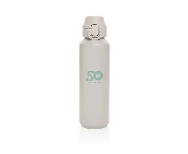Спортивная бутылка Via — идеальный компаньон во время активного отдыха. Изготовлена из переработанной стали марки 304. Оснащена герметичной запираемой крышкой, которую при необходимости легко открутить. Бутылка предназначена для холодных напитков, рекомендовано только ручное мытье. На 73% состоит из переработанной стали, сертифицированной RCS (Recycled Claim Standard). Сертификация RCS гарантирует полный контроль всей цепочки поставок переработанных материалов. Не содержит бисфенол А, вредный для организма. Объем 600 мл.