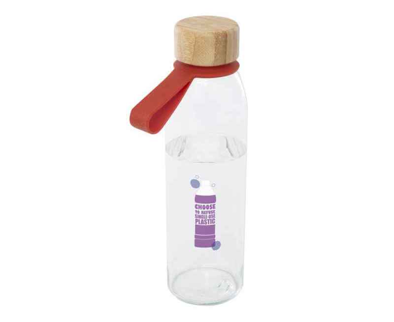 Одностенная стеклянная бутылка для воды с завинчивающейся бамбуковой крышкой, произведенной из более устойчивых и социально ответственных источников. В комплект входит удобный силиконовый ремешок для удобной переноски. Поставляется в подарочной коробке из переработанного картона. Объем: 500 мл. Стекло, FSC certified bamboo. упаковка FSC Mix Credit P5.1 CU-COC-877277. FSC 100% N5 CU-COC-877277.
