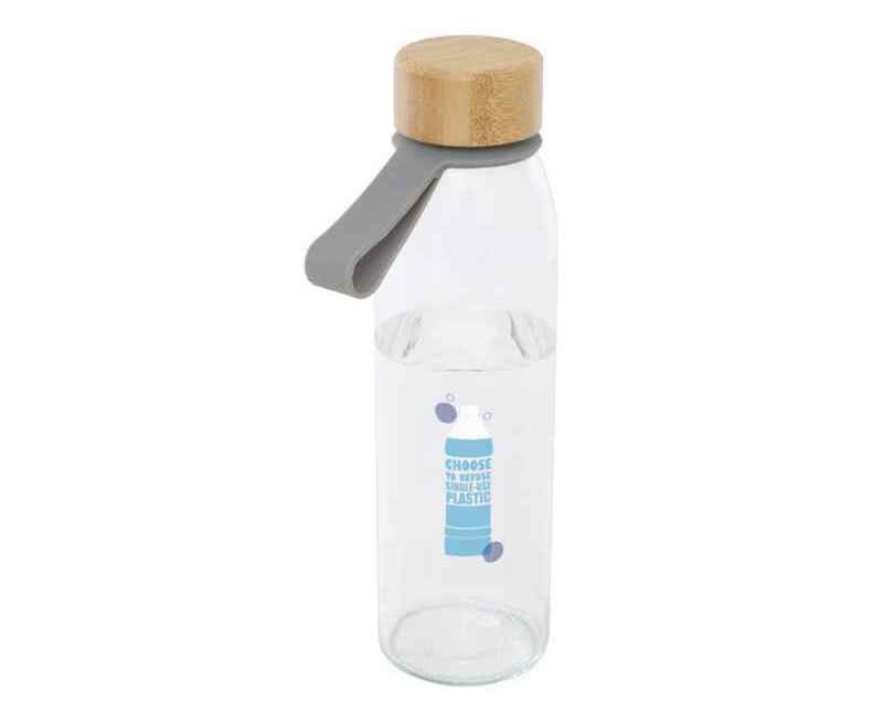 Одностенная стеклянная бутылка для воды с завинчивающейся бамбуковой крышкой, произведенной из более устойчивых и социально ответственных источников. В комплект входит удобный силиконовый ремешок для удобной переноски. Поставляется в подарочной коробке из переработанного картона. Объем: 500 мл. Стекло, FSC certified bamboo. упаковка FSC Mix Credit P5.1 CU-COC-877277. FSC 100% N5 CU-COC-877277.