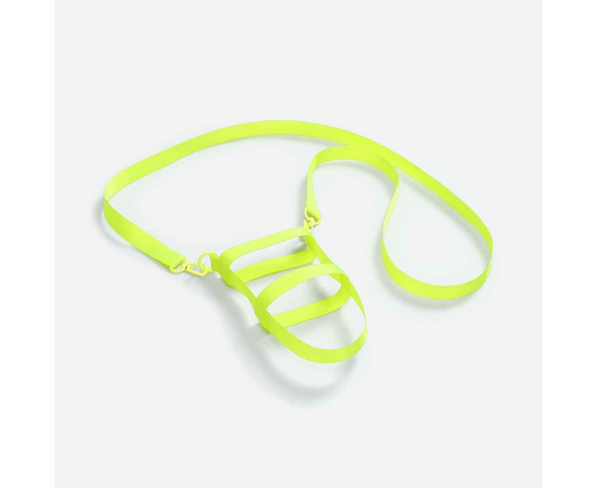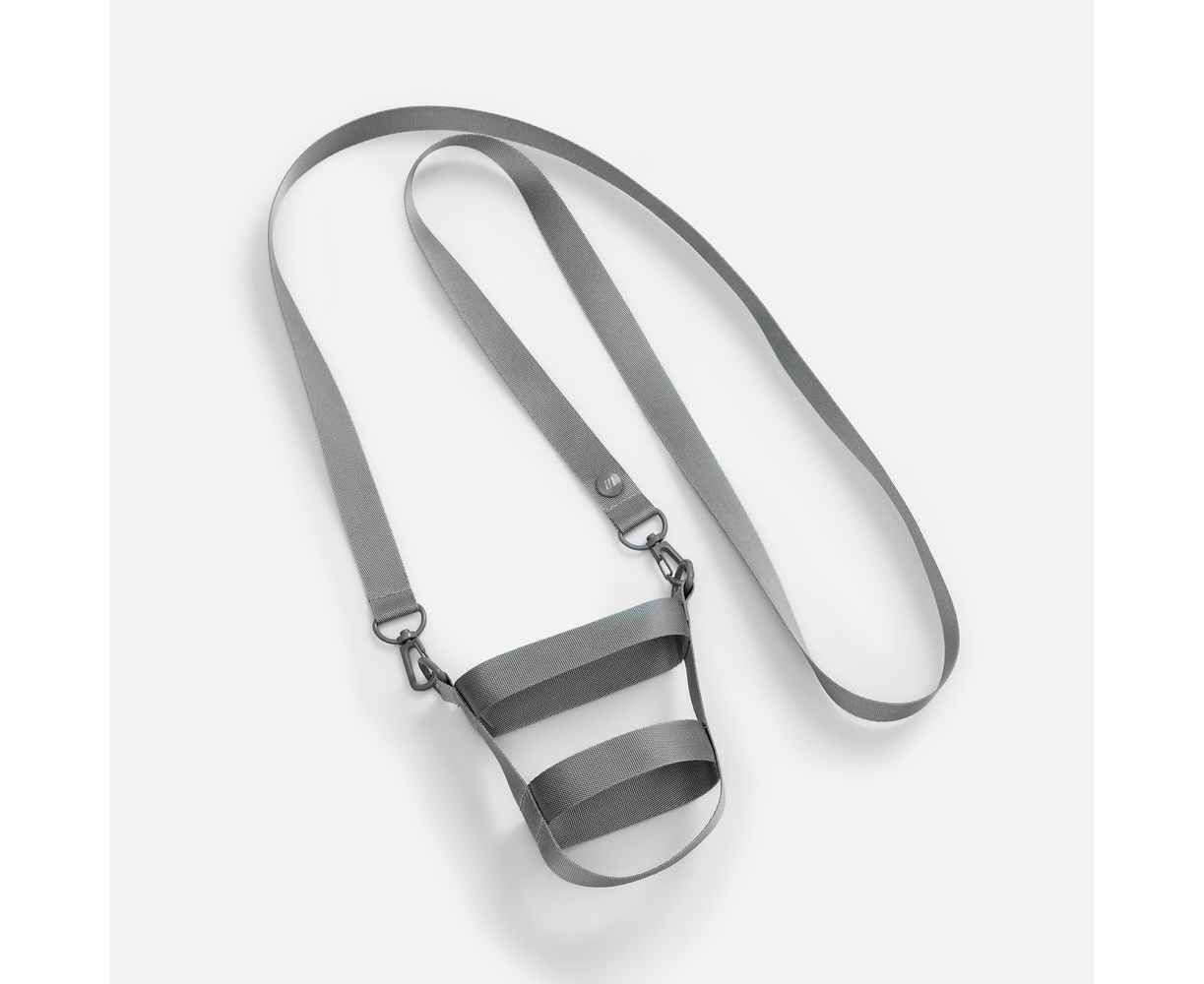 Сумка для бутылки из стропы Kesta построена по принципу конструктора из нескольких обязательных элементов: текстильных строп Fune 20 разной длины, двух застежек-карабинов и двух полуколец. Благодаря такой системе сумка легко адаптируется под конкретную бутылку — учитывает ее форму, диаметр и высоту, обеспечивая плотную посадку и комфорт при переноске.