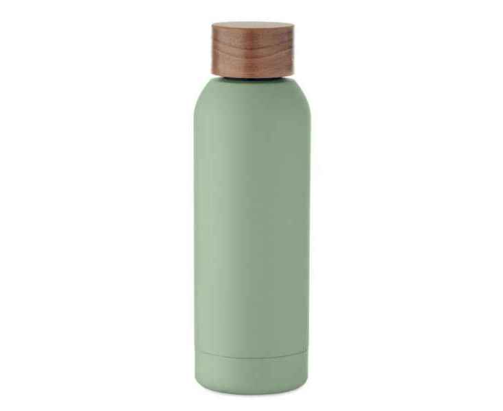 Термобутылка из переработанной нержавеющей стали 90% и 10% нержавеющей стали с резиновым покрытием и крышкой из древесины акации. Герметичная. Емкость: 700 мл. Стенки бутылки могут нагреваться.
