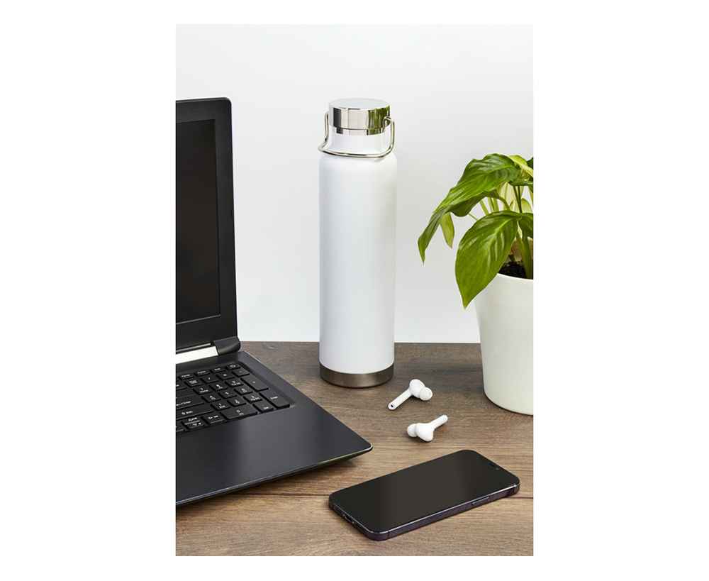 Бутылка из переработанной нержавеющей стали с двойными стенками и медной вакуумной изоляцией, сертифицированная по стандарту RCS. Оснащена завинчивающейся крышкой из переработанной нержавеющей стали с прочной петлей для руки из нержавеющей стали. Широкое горлышко для комфортного наполнения и заливки. Объем: 650 мл.