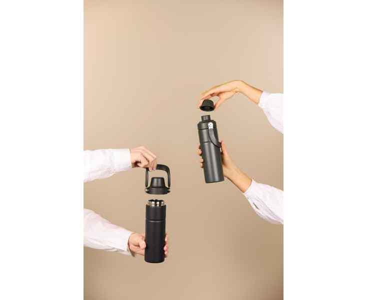 • функциональная крышка с двумя отверстиями: узкое горлышко для питья и широкое для легкого наполнения и очистки;