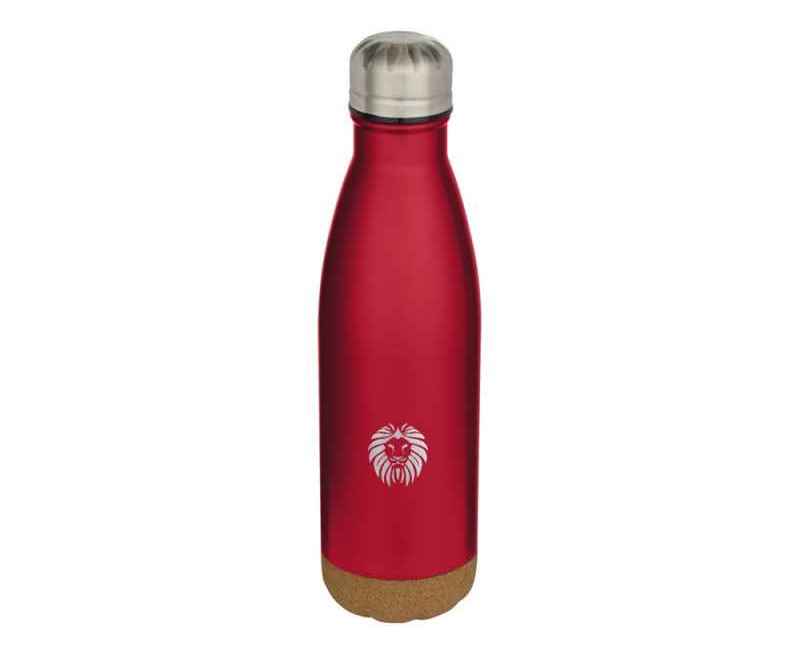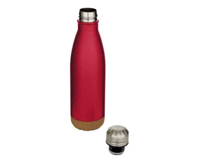 Бутылка для воды из нержавеющей стали с вакуумной изоляцией и пробковыми деталями в нижней части. Двойная изоляция стенок сохраняет напитки горячими или холодными в течение нескольких часов. Поставляется в подарочной коробке из переработанного картона. Объем: 500 мл. 90% нержавеющая сталь, 10% Пробка. упаковка FSC Mix Credit P5.1 CU-COC-877277.