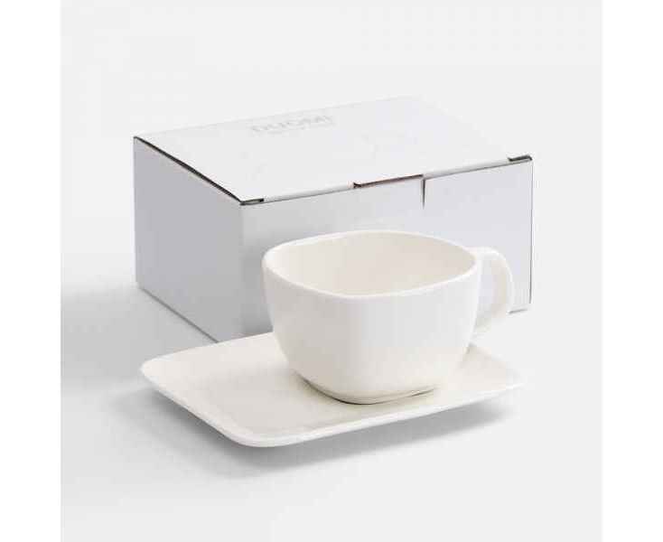 Чайная фарфоровая пара Duomi создана для размеренного утра и тихого вечера, чтобы просто побыть наедине с любимым напитком и приятными мыслями. Утонченная геометричность форм, плавные линии и сглаженные углы каждого элемента сразу привлекают внимание и создают созерцательное настроение. Оптимальный объем чашки и блюдце, на которое можно поместить небольшой снек, располагают к неспешному чаепитию.
