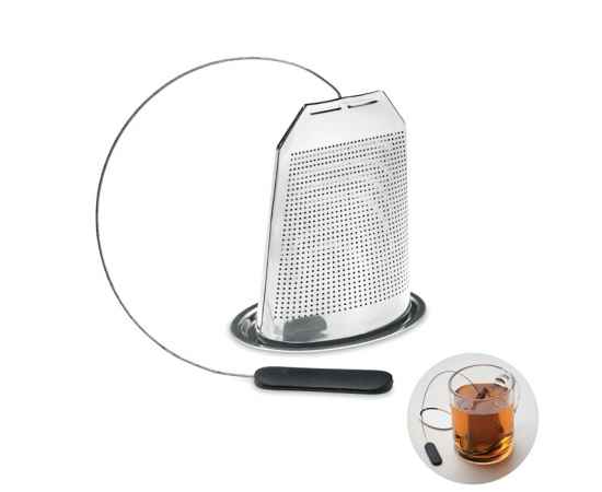 Инфузор для чая из нержавеющей стали в форме чайного пакетика с силиконовой ручкой.