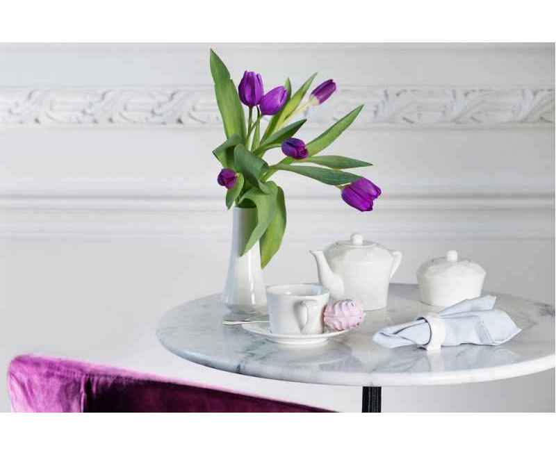 Линейка столовой посуды Diamante Bianco — настоящий бриллиант коллекции Altavolo. Структура и пропорции граней блюдца, чайника и сахарницы в точности повторяют верхнюю часть бриллианта классической огранки — корону. Присмотритесь — и вы увидите, как играет свет на молочно-белом фарфоре.