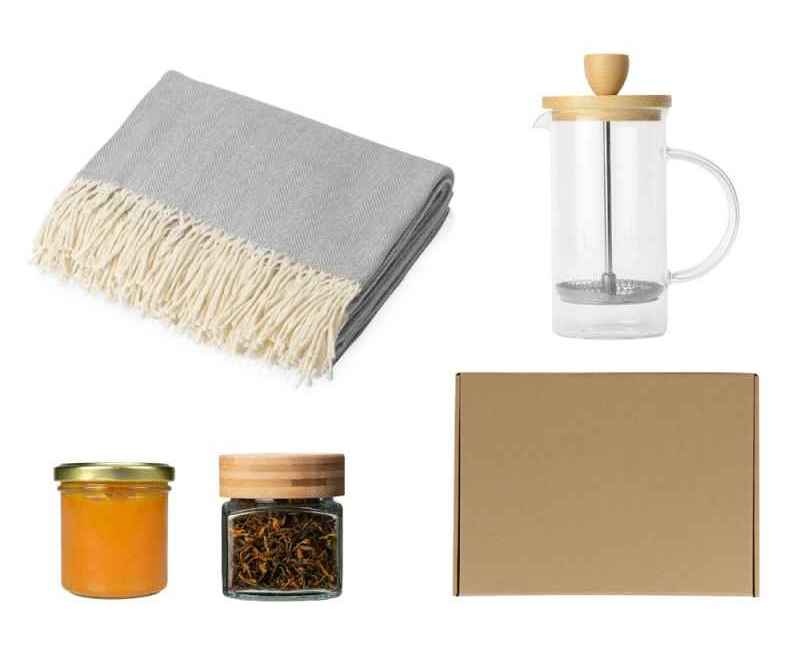 Подробнее о Подарочный набор с пледом, френчпрессом, чаем и вареньем, 350077.02