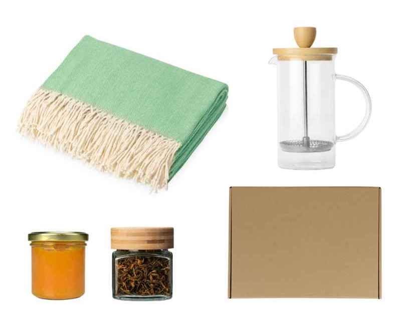 Подробнее о Подарочный набор с пледом, френчпрессом, чаем и вареньем, 350077.03