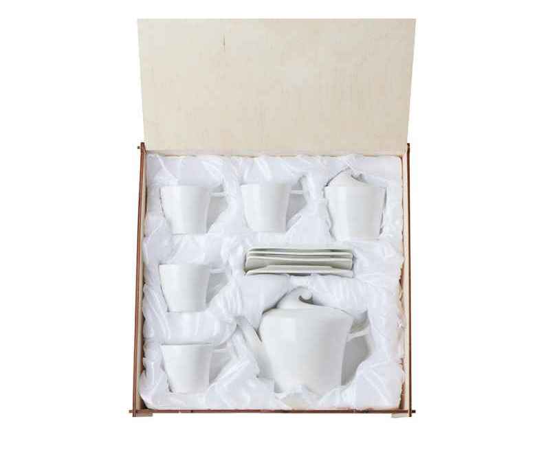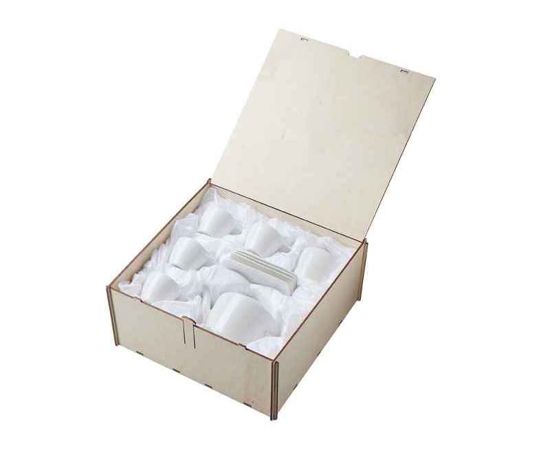 Сервиз поставляется в деревянной коробке. Вы можете нанести на нее логотип или памятную надпись. Это готовая идея для безупречного корпоративного подарка.